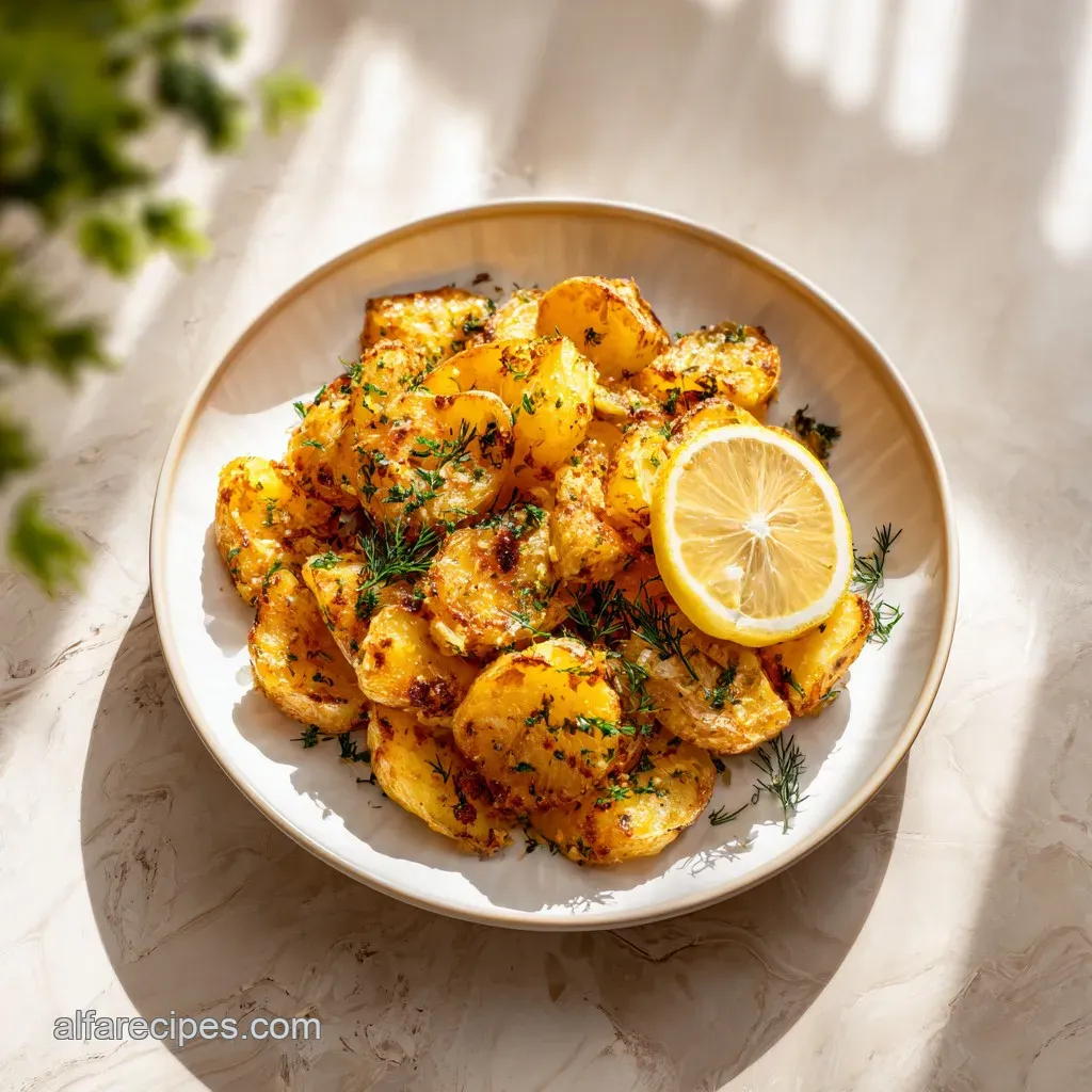 They are traditionally known as Patates Lemonates. These are a staple dish in Greek households, prized for their signature tender interior and golden, crispy edges.