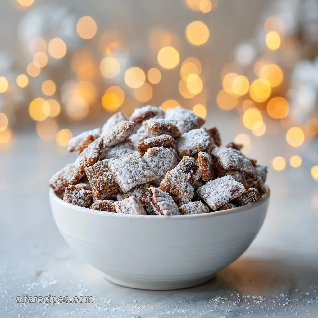 If you are gifting this christmas muddy buddies mix puppy chow, put it in a mason jar with a red ribbon. Just make sure the mix is completely chilled before you close the lid, or any residual warmth will create condensation, and you’ll be back to that "gray sludge" problem I had years ago.